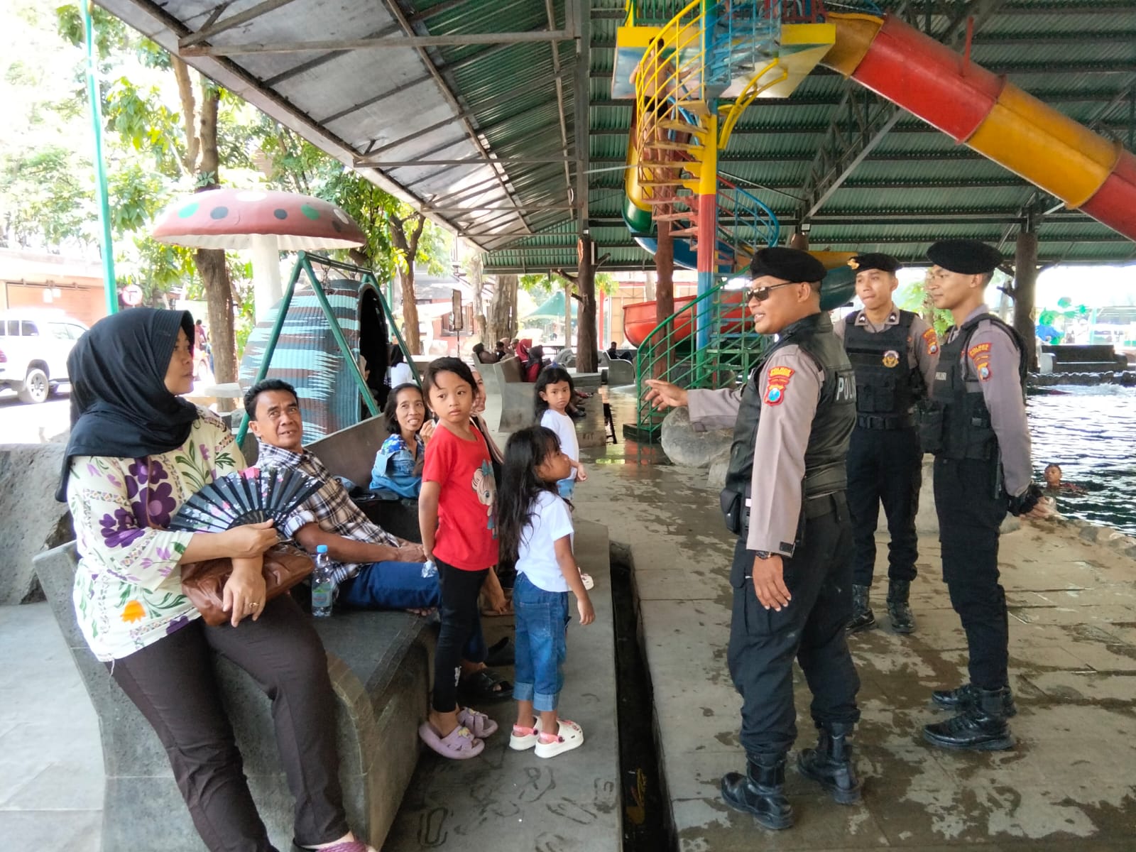 Dalam pelaksanaannya, petugas Satsamapta melakukan patroli dialogis dengan pengunjung maupun pengelola tempat wisata. Petugas memberikan imbauan secara humanis agar masyarakat tetap waspada terhadap barang bawaan serta selalu memperhatikan keselamatan, khususnya bagi anak-anak yang bermain di area kolam.